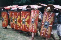 Satan has different methods of assaulting us. The Lord gave us armor to protect us and then if the battle rages too hot, we remember “He shall cover thee with his feathers, and under his wings shalt thou trust: his truth shall be thy shield and buckler.” (Psalm 91:4). In His grace, He provides for us in every kind of battle, in all battles! (Left, shield wall to deflect incoming arrows)