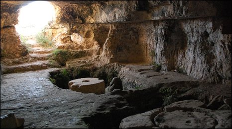 In old days the Israelites’ wine production was a major industry. Ancient wine presses have been discovered all over the Middle East, and in and around modern day Israel. The grapes would be gathered, and placed in a rectangular pit entered from a cleaned mosaic floor. The floor of the press would be stone, also washed. The trite picture of people stomping on grapes is not so trite: the gentleness of the underside of the foot would crush the grapes enough to release the juice but not crush the bitter seeds, releasing tannins into the wine. The juice would be allowed to run down a slough, through a filter made of leaves and thorn ranches. Seeds and twigs removed, the second pressing would then involve a press of stone, like the one below. Notice the trough running around the rim of the stone, to catch the juice.
