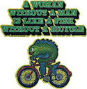 One thing I remember is my mother teaching me about feminism. How “a woman can do anything.” [Really? Anything? And even if we could, which we can’t, do we want to?]. She used to wear a blue tee shirt that had the slogan: “A woman without a man is like a fish without a bicycle.” It had a fish riding a bicycle on the front. The deduction one makes is that women don’t need men. They are useless in the world of the fish. Er, women.