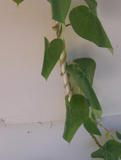 I had a morning glory on the left side of my door for about a year. Boy, that thing grew fast! It soon wound around the wrought iron plant stand and up over the awning. The flowers looked so pretty in the morning when they bloomed! But then my landlord said that he had to excavate that area and was going to pave it over. I had to get rid of the wrought iron stand and the flowers.