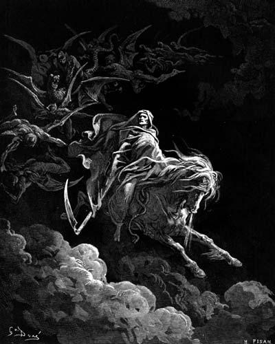 “When the Lamb opened the fourth seal, I heard the voice of the fourth living creature say, “Come!” I looked, and there before me was a pale horse! Its rider was named Death, and Hades was following close behind him. They were given power over a fourth of the earth to kill by sword, famine and plague, and by the wild beasts of the earth.” (Revelation 6:7-8)
