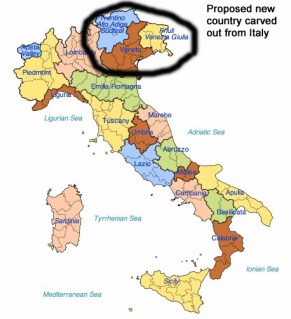 “Inspired by the nationalist aspirations of Scotland and Catalonia, pro-independence campaigners will hold a mass rally in the heart of the lagoon city on Saturday, calling for an urgent referendum to be held on the issue. Indipendenza Veneta, a newly-founded pro-independence movement, says it expects several thousand people to turn up for the rally. They will be ferried across the Grand Canal in gondolas to deliver a “declaration of independence” to the headquarters of the Veneto regional government. It may sound fanciful, and it will be fiercely resisted by Rome, but activists want to carve out a new country in north-eastern Italy which would comprise Venice, the surrounding region of Veneto and parts of Lombardy, Trentino and Friuli-Venezia Giulia. The “Repubblica Veneta”, as it would be known, would encompass about five million people.”