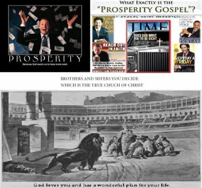 Posted in theology Which is the prosperity gospel, exactly? Posted on November 4, 2012May 9, 2016 by elizabethprata From my friend Shankar: Share this: Click to share on X (Opens in new window) X Click to share on Facebook (Opens in new window) Facebook Click to share on Pinterest (Opens in new window) Pinterest Click to share on Reddit (Opens in new window) Reddit Click to share on Tumblr (Opens in new window) Tumblr More Click to share on WhatsApp (Opens in new window) WhatsApp Click to share on Telegram (Opens in new window) Telegram Like Loading... Author: elizabethprata Christian writer and Georgia teacher's aide who loves Jesus, a quiet life, art, beauty, and children. View All Posts