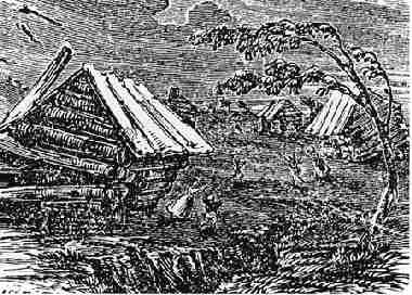 but more likely, actually, St. Louis would slide into the Mississippi. Here is a woodcut depicting the 1811-1812 New Madrid quake damage