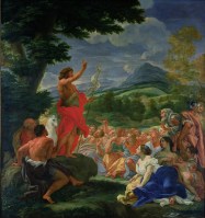 Left, John the Baptist, by Preti, MetMusum. “Saint John the Baptist is shown seated in the wilderness exhorting the viewer to repentance, his right hand pointing heavenwards, his skin tanned through years in the desert. The lamb stands for Christ, the “lamb of God.”