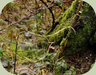 Do you see the snare at right? It is almost invisible, and an inattentive rabbit wanting just to take a mouthful of the juicy and tempting moss will get caught! It’s like when we say, “one visit won’t harm me…one drink will be OK…if I take just $5 from the till no one will notice…”