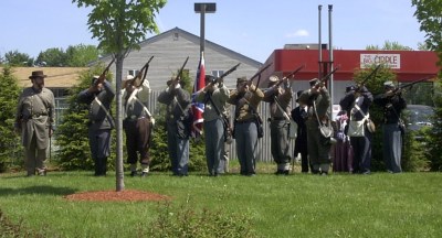 The 15th Alabama Regiment Company G re-enactors are stationed in central Maine, and annually they arrive at Gray to perform honors for the fallen soldier at the Gray Memorial Day ceremony.