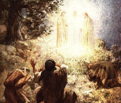 “And after six days Jesus took with him Peter and James, and John his brother, and led them up a high mountain by themselves. And he was transfigured before them, and his face shone like the sun, and his clothes became white as light. And behold, there appeared to them Moses and Elijah, talking with him. And Peter said to Jesus, “Lord, it is good that we are here. If you wish, I will make three tents here, one for you and one for Moses and one for Elijah.” He was still speaking when, behold, a bright cloud overshadowed them, and a voice from the cloud said, “This is my beloved Son,a with whom I am well pleased; listen to him.” When the disciples heard this, they fell on their faces and were terrified. But Jesus came and touched them, saying, “Rise, and have no fear.” And when they lifted up their eyes, they saw no one but Jesus only.” (Matthew 17:1-8)