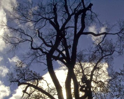 The colors of fall are spectacular. Once the summer haze and humidity clears out the night sky becomes ablaze with stars and the day sky is a deep blue like a sapphire. Years and years ago, I took this photo of a fall tree in Maine, its leaves having dropped and its bare arms crookedly reaching under an azure sky. I’ve always liked the picture.