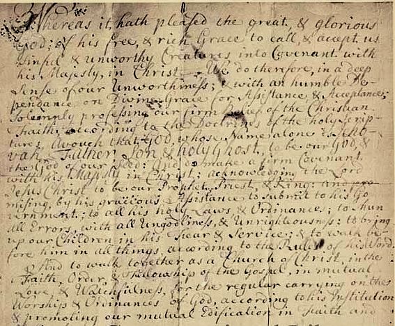 -a solemn agreement between the members of a church to act together in harmony with the precepts of the gospel.