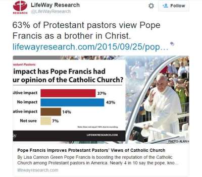 Worse to swallow though is the massive biblical ignorance from the more conservative quarters, such as the LifeWay survey participants. Catholicism is NOT Christianity. The Protestant Reformation happened during the last year of the Middle Ages (1517) because of the protests from those who had come to see this fact and were willing to stand up and be heard. Christians protested the Catholic Church’s corruption of the Gospel, its stranglehold on the people, and the depravity of the papacy & priesthood. We are still protesting, or should be. Yet according to the survey above, those who should know better are accepting, not protesting. They are joining, not separating. The blood of all the true Christians martyred at the hands of the Pope and his henchmen cries out from the ground against this blasphemy and this defection.