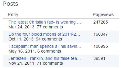 For example, the all time blog post that has gotten the most views is improbably the one where I wrote against the sideways necklace. SMH. I try not to have human pride in what I write, but sheesh, one would pray that a more spiritual essay would be the one that got people to read here and perhaps become strengthened or better yet, come to know Jesus. But noooo, a necklace. Oh well! SDG.