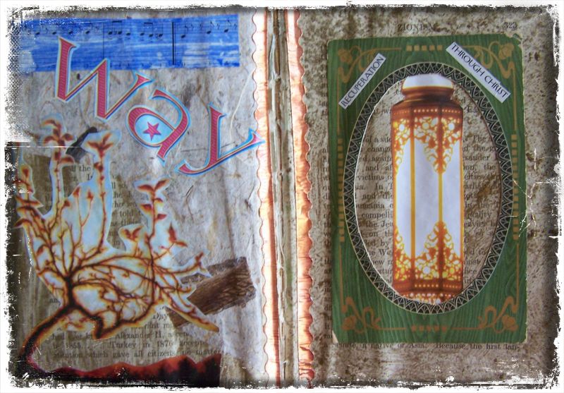 Many visually oriented folks know that prayer journals and art journals are a great way to record thoughts and reactions to scripture. I mentioned in last night’s essay that I made art journals and individual little books during my process of coming to salvation and just afterwards. As a new babe in Christ I had difficulty grappling with new doctrines and I’d often try to visualize them since words failed me. I also used my art journal to make collages in praise to the Lord. I was so excited! The depth of my gratitude overflowed and words failed me then, too, so I’d use pictures to express what I felt. I did them in my blank sketchbook, though, NOT in my Bible.