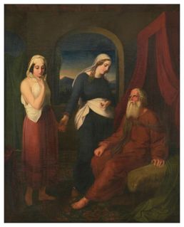 | Sarah leads Hagar to Abraham, by Moritz Daniel Oppenheim, 1800-1882, German |