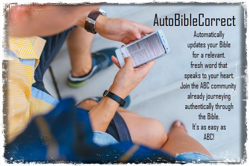 The community of believers using ABC urge you to get a fresh word now. Join the journey toward an authentic, subjective faith! It will work for you. Why? AutoBibleCorrect is missional, modern, and marvelous! Update your faith now with AutoBibleCorrect, the true killer app.