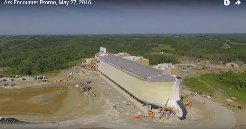 Six years in the planning and making, The Ark Encounter exhibit opens July 7, although the word “exhibit” might be understating it a little. The Answers in Genesis Creation Museum just over the state border from Cincinnati in Kentucky has almost completed their life-sized replica of Noah’s Ark, ready for thousands and thousands of visitors from all over the world. More from Wikipedia. The Museum itself is about 45 miles from the Ark Encounter Theme Park. Here are a couple of still shots from their May 2016 promo video.