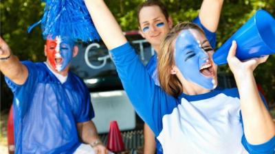 Oftentimes, football fans expend the effort to decorate themselves in team colors.