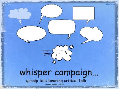 Whisper campaigns can be devastating. Sometimes a Christian doesn’t mean to spread tales or doesn’t know the tales are untrue. It’s still sin. Sadly, other times, people deliberately whisper against others, even those who sit in the same pew. Whisper campaigns are-