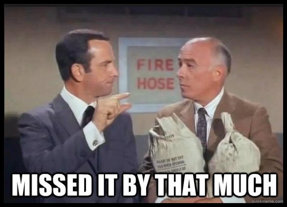 Not so. There was a spy spoof TV program in the 1960s called Get Smart. Max the bumbling, incompetent spy used to say “Missed it by that much.”