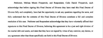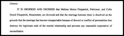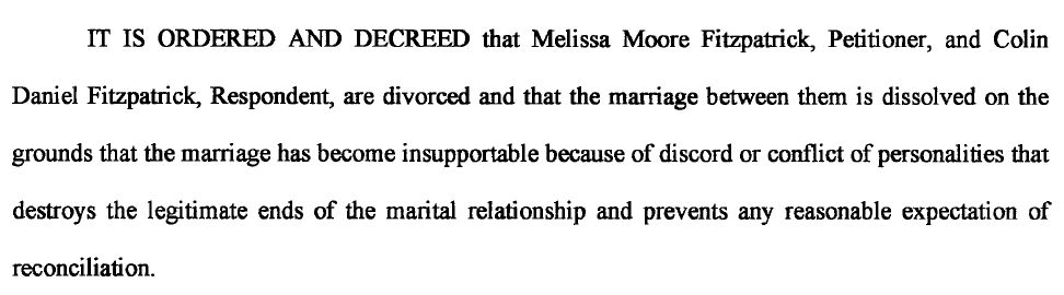 I know court records are public so I found the public divorce documents. The reason for Melissa Moore’s 2013 divorce was… “Personality Conflict”. Melissa initiated it.