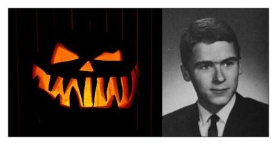 The world wants you to think that evil is only the malevolently grinning jack-o-lantern on the left. However, it is actually the handsome and charismatic serial killer on the right. (Ted Bundy)