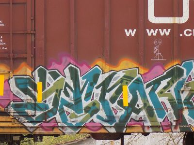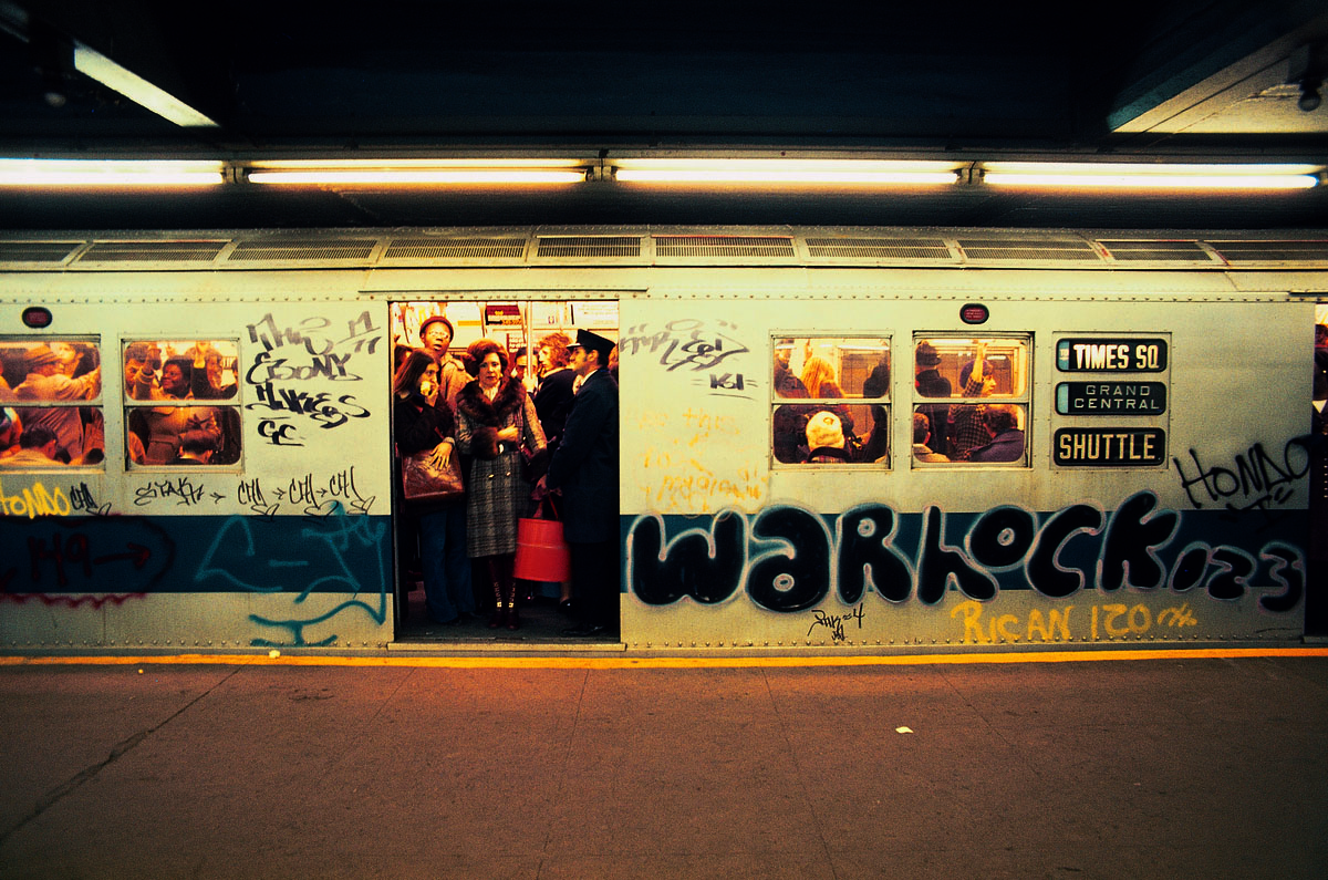 It’s subway and graffiti. OK, so the grit is there. The lighting is great, the warm glow of the interior of the car contrasted with the steel of the exterior. The light, joy, and movement of the people through the window to the left and the right. The yellow strip which mirrors the rush and zoom of the car itself when it arrives and departs.