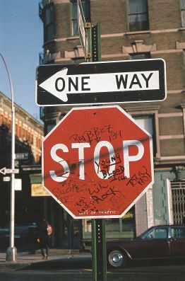 I love-hate graffiti, it is a blight but it’s also art. Art blight. Blighted art. I dunno. Overall I’m just fascinated by it. I also like gritty city pictures, tattered handbills, signs, doorways, subways…Naar’s photos were all stupendous and so evocative. Yes, he takes shots of just graffiti, but he took many of his shots with people in them. Kids playing basketball against a backdrop of a heavily graffitied wall…a mom and toddler walking by a profane graffiti mural…and so on.