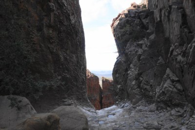 | Not my photo.”The Window is a slit in Chisos Mountain Ranges where one could glimpse the Chihauhuan Desert plain below. ” Source |