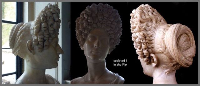 Since dress was fairly uniform, it was the hair that was the main event. Since all Roman women believed that loose hair was a sign of barbarianism and coiffed hair was a sign of civilization and even literacy, they all did their hair. They all wore it up, except for young girls, or at funerals.