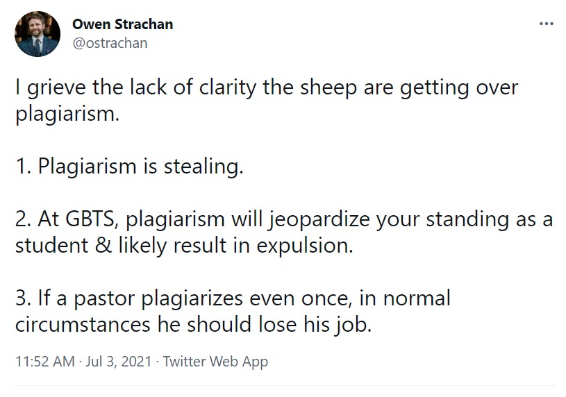 Pastor Don Green of Truth Community Church wrote a heartfelt short essay on plagiarism and sermon preparation as a duty by the Pastor. I recommend it to you.