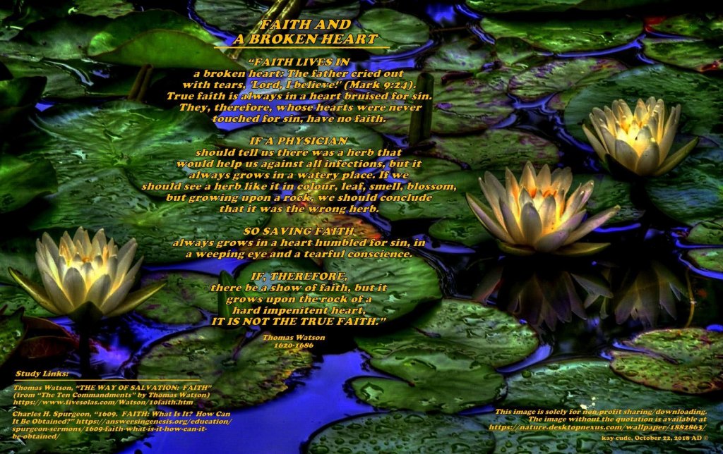 And yet it truly is a penitent heart where God works His saving work! It is our broken heart for sin that makes us hear His Words clearly–and we respond! I agree with Thomas Watson, “True faith is always in a heart bruised for sin.”