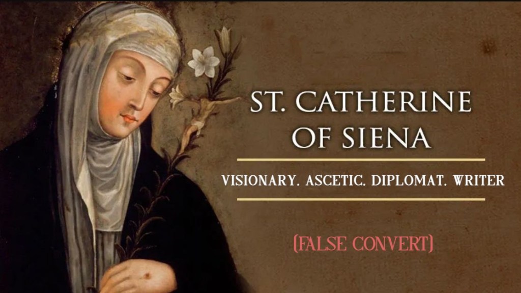 Catherine’s theatrics, her extreme asceticism, her visions and communications from an alleged God, her strange fixation on illness and blood, her mystical marriage, were all accepted by the Catholic Church but should be rejected by right-thinking Protestants today.