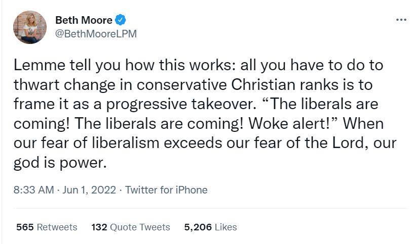 This is the kind of sugary Christian-esque language that goes over great with the unsaved world. It’s the language of the winsome and nuanced. Instead of engaging what actual arguments are being made in the SBC right now (she gives the context in the thread), Beth simply appeals to the base emotional responses of her audience. “There was a sex scandal! We need to do something! If you don’t want to do something, you hate women! If you speak against it, you’re just fearful of change!” Beth has demonstrated repeatedly her hatred of those who felt she should be held to a biblical standard. She fled the SBC because that spotlight was too bright and too many questions were being asked for her liking.