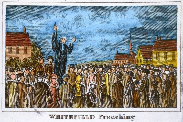 Harken An engraving, ca. 1740, of George Whitefield preaching in the Americas. Photo: Granger, NYC / The Granger Collection. Source |