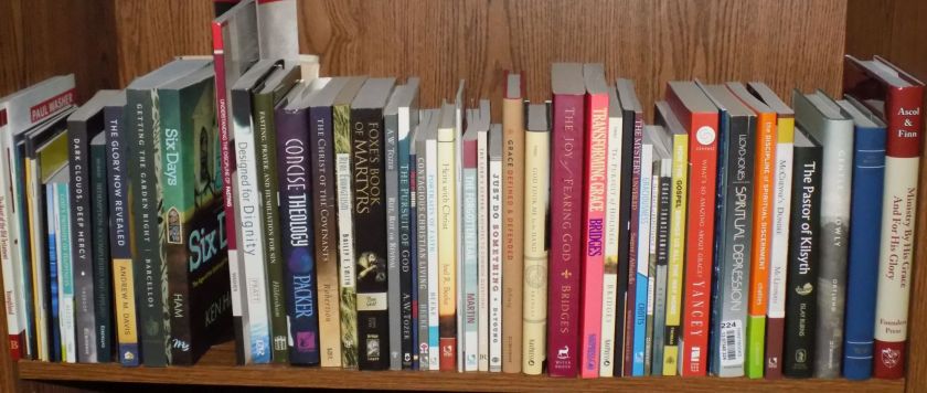 Mr. Carter mentioned some ways to build a library that didn’t work for me. One of the ways he recommended building a library was to focus on access, not ownership. I like owning a book to borrowing one. I stick Post-it arrows, dog ear the pages (gasp!) and sometimes make notes in the margins. Can’t do that with borrowed books. He also mentioned e-books. I am old. My eyes get tired easily. I never adjusted to reading on a screen. I just can’t. Also, he mentioned thinking beyond books, like Theological Journals. Journals are fine, but I like books.
