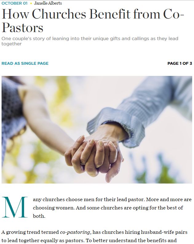 Co-pastoring in this case refers to churches where the male pastor and his wife are listed as equal pastors of the flock. Since that article above was written sixteen years ago, co-ed co-pastors are touted as something acceptable – desirable even. Recently, then-retiring pastor Rick Warren chose a duo replace him, sparking a brouhaha and subsequently splitting the Southern Baptist Convention meeting over this contentious issue.