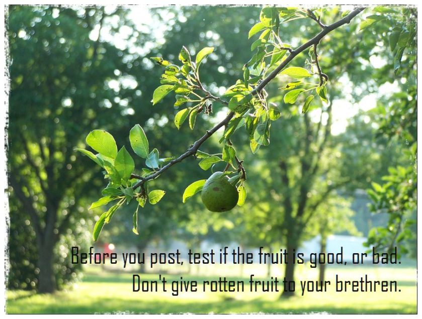 15″Beware of the false prophets, who come to you in sheep’s clothing, but inwardly are ravenous wolves. 16You will know them by their fruits. Grapes are not gathered from thorn bushes, nor figs from thistles, are they? 17So every good tree bears good fruit, but the bad tree bears bad fruit. 18A good tree cannot bear bad fruit, nor can a bad tree bear good fruit. 19Every tree that does not bear good fruit is cut down and thrown into the fire. 20So then, you will know them by their fruits.” (Matthew 7:15-20).