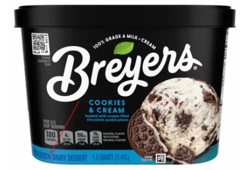 Many products that used to be called ice cream are now called “frozen dairy dessert”. Even Breyer’s! Look for a carton labeled actual “ice cream” to be sure you are actually getting ice cream. Frozen dairy desserts have more air and less than the FDA required 10% milk fat. Frozen dairy desserts fall below these standards, containing lower fat different ingredients, or simply, air. While ice cream is made of milk, cream, and sugar, frozen dairy desserts often replace butterfat with vegetable oils instead, such as palm, kernel, or coconut oil. Read the labels and read the ingredients!