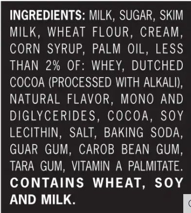 Ingredients list of the above Breyer’s Cookies & Cream: