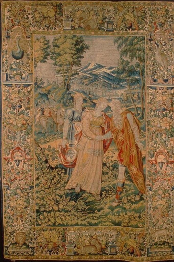 Rachel Giving Bilhah to Jacob from The Story of Jacob series, 1550-75, Netherlandish, Brussels. Artist unknown. From the Metropolitan Museum of Art.