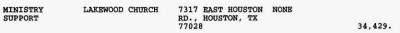 Or in 2004 when she donated $34,429 to Joel Osteen’s church for “ministry support”?