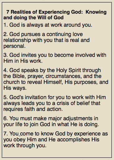 “Experiencing God: Knowing and Doing the Will of God” has a simple -– but challenging -– message: Find out where God is at work and join Him there. (source)