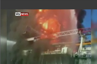 An oil platform explosion overnight in the Gulf of Mexico forced the crew to jump into the sea and threatened further damage to waters still recovering from the BP disaster. It was the second such disaster in the Gulf, but this time there was no leak and no one was killed. Fire engulfed the offshore platform 160 kilometres south of the Louisiana coast shortly after 9am (midnight AEST) and massive plumes of grey smoke billowed into the sky as rescuers rushed to fish out the workers. No cause for the explosion has been established.