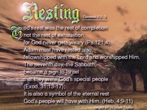 Of course, the most important mention of rest was in Genesis 2:3 where God Himself rested on the 7th day. “Then God blessed the seventh day and sanctified it, because in it He rested from all His work which God had created and made.”