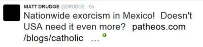 I read, shaking my head the whole time, a news article from today, June 16, 2015, noting that some Catholic archbishops and other religious muckey-mucks got together to exorcise the demons from Mexico. All of them. Nationwide.