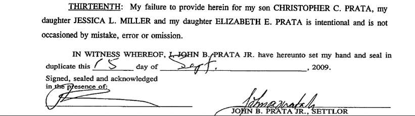 Knowing this, it is a hard thing, but I trust my Lord and it is a just thing. There but for the grace of God go I. John Prata’s legacy is a sad one. His heart is expressed in the form below. His Trust reads thus: