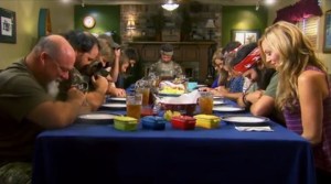 Above, patriarch Phil Robertson of Duck Dynasty prays over the family before dinner