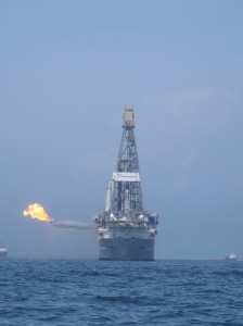 Above, Discoverer Enterprise methane flare. photo source/credit