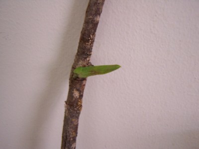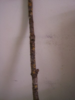 I thought it was strange, because I’ve had the stick for a couple of years and it has always been dead. It was dead on the ground when I got it, it languished dead in the windowsill through winters, rains, and heat, and it was dead when I used it to prop up the window all this time. Here is a photo: