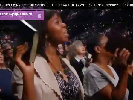 Screen capture from Osteen sermon, audience repeating Osteen bible mantra |